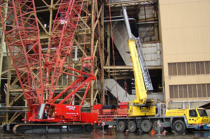 A crawler crane is mounted on an undercarriage with a pair of caterpillar tracks that provide stability and mobility. Their configuration – such as boom length, backmast and counterweight – can be adjusted to specific requirements. This provides additional lifting capacity. Crawler cranes can crawl with a load, allowing more flexibility in lifting. They can carry loads ranging from 60 to 1,000 tons. Bay Crane has access to a large and diverse fleet of crawler cranes, which allows us to serve a variety of customers’ needs and guarantee a high level of availability.
