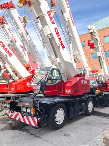 Rough terrain (RT) cranes are cranes with a hydraulic expandable and often rotating boom. They are designed for pick-and-carry operations and for off-road and “rough terrain” applications. They are versatile and flexible as they can travel over the road independently, can also be transported to sights by truck, and require limited or no assembly on site. Their load capacity ranges from 8 to 160 tons.