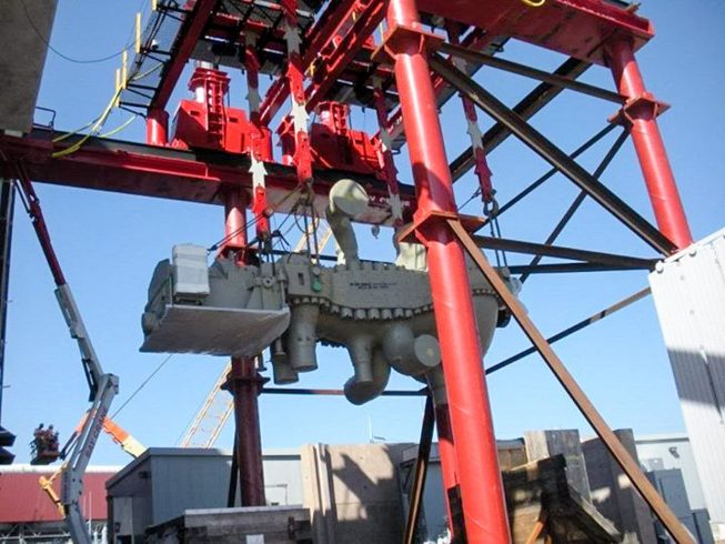 The shark link system can be assembled and operated by any crew with hydraulic gantry experience. No specialized knowledge is needed. It requires no electronics or complex components to operate. The system is unaffected by harsh operating conditions (dust or rough handling) both in operation and storage. The system is available containerized for easy shipping. The entire Shark Link System costs less than an equivalent strand jack setup, and has no consumable or operating costs. Unlike strand jacks, the system is fail-safe. It is positively engaged at all times, and issues such as strand release through insufficient load are eliminated. The Shark Link system will work with any hydraulic boom gantry and different capacity versions are available.