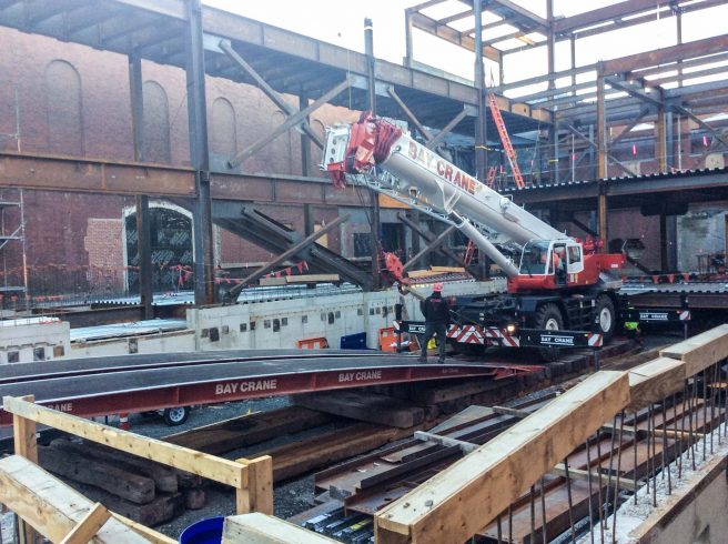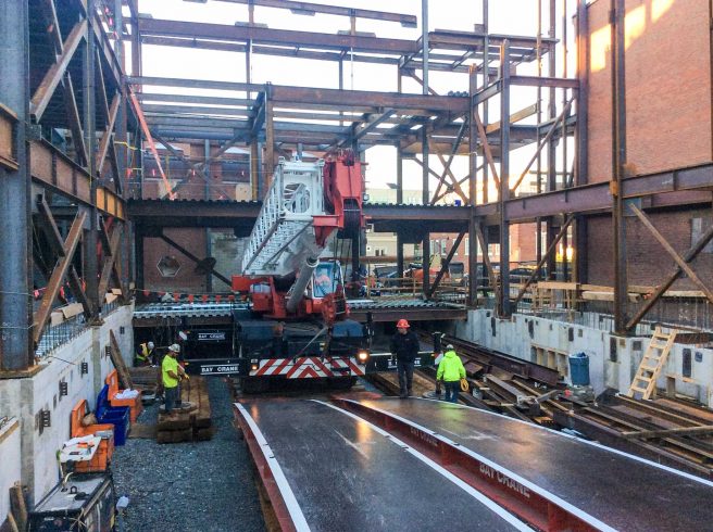 Regardless of the terrain, Bay Crane has the experience and equipment to devise the best solution for transporting a large variety of structures, materials, and equipment. We are equipped to handle heavy loads over public roadways or through congested work zones using specialized trailers and other transport systems. Up to 120 feet in length.