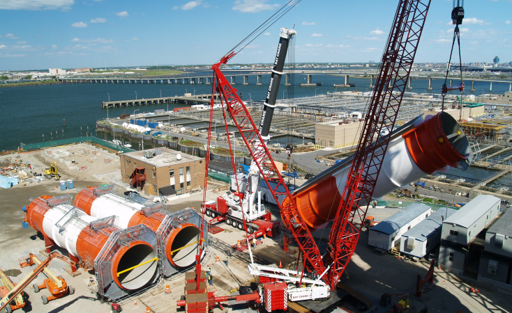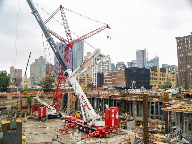 All terrain cranes are versatile and flexible as they can travel over the road independently and require limited or no assembly on site. They have a hydraulic expandable and often rotating boom. Their load capacity ranges from 8 to 600 tons.