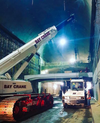 A telescopic crawler crane is mounted on an undercarriage with a pair of caterpillar tracks that provide stability and mobility. Their configuration – such as boom length and counterweight – can be adjusted to specific requirements. This provides additional lifting capacity. Crawler cranes can crawl with a load, allowing more flexibility in lifting. Bay Crane has access to a diverse fleet of telescopic crawler cranes, which allows us to serve a variety of customers’ needs and guarantee a high level of availability.