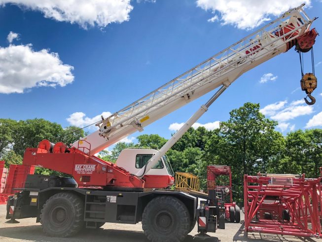 Rough terrain (RT) cranes are cranes with a hydraulic expandable and often rotating boom. They are designed for pick-and-carry operations and for off-road and “rough terrain” applications. They are versatile and flexible as they can travel over the road independently, can also be transported to sights by truck, and require limited or no assembly on site. Their load capacity ranges from 8 to 160 tons.