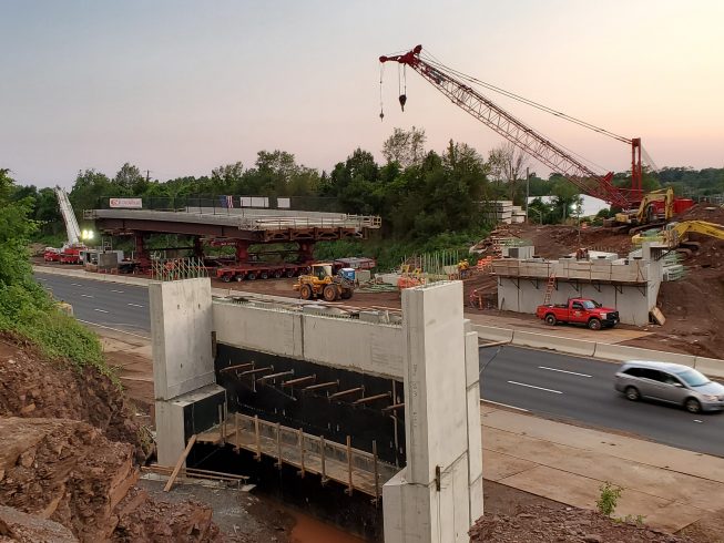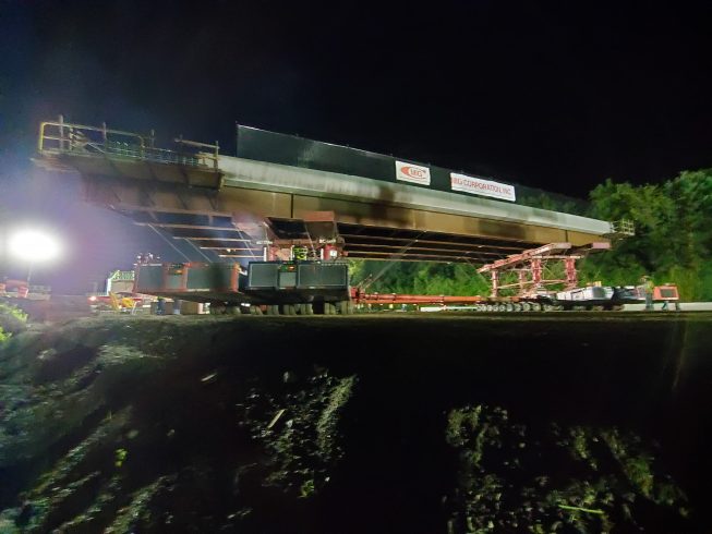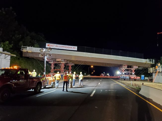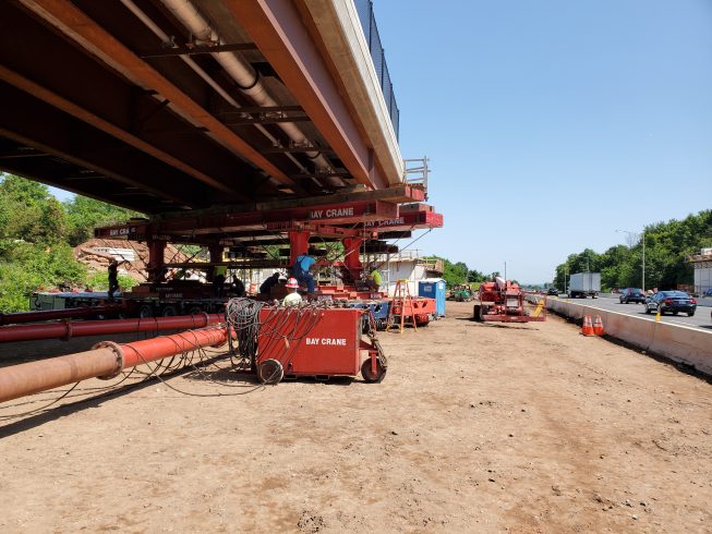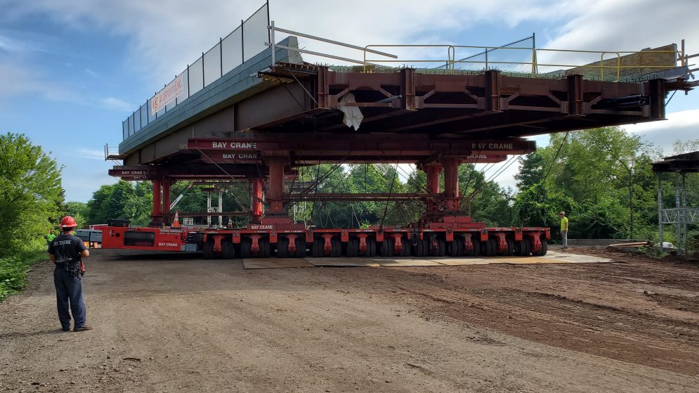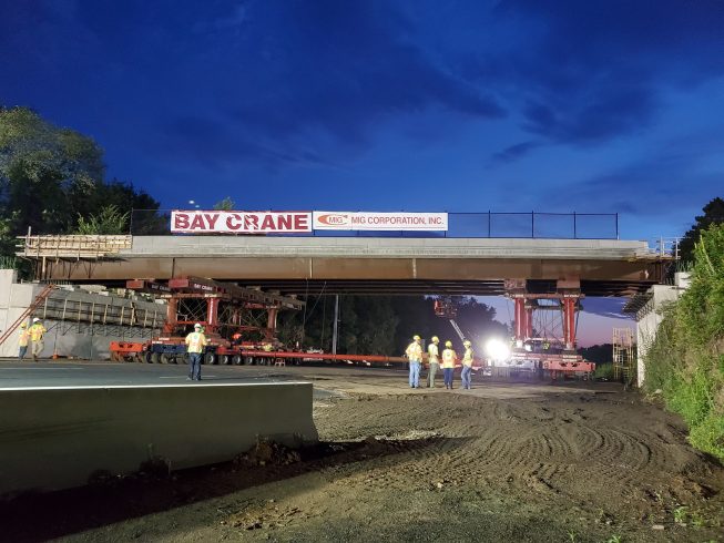 The lift, transport, and set of the two new Elm Street Bridges were accomplished safely and without incident. Several Bay Crane branches combined efforts to meet the challenges of the project. And the success of this project is attributed to many months of planning, document submittals, approvals, on-site meetings and extraordinary teamwork exhibited by the State of Connecticut, the numerous contractors involved and the many craft employees on the job.