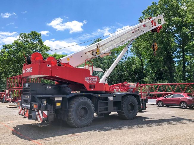 Rough terrain (RT) cranes are cranes with a hydraulic expandable and often rotating boom. They are designed for pick-and-carry operations and for off-road and “rough terrain” applications. They are versatile and flexible as they can travel over the road independently, can also be transported to sights by truck, and require limited or no assembly on site. Their load capacity ranges from 8 to 160 tons.